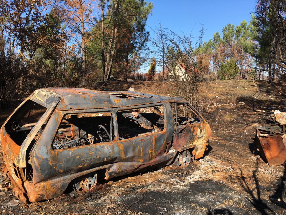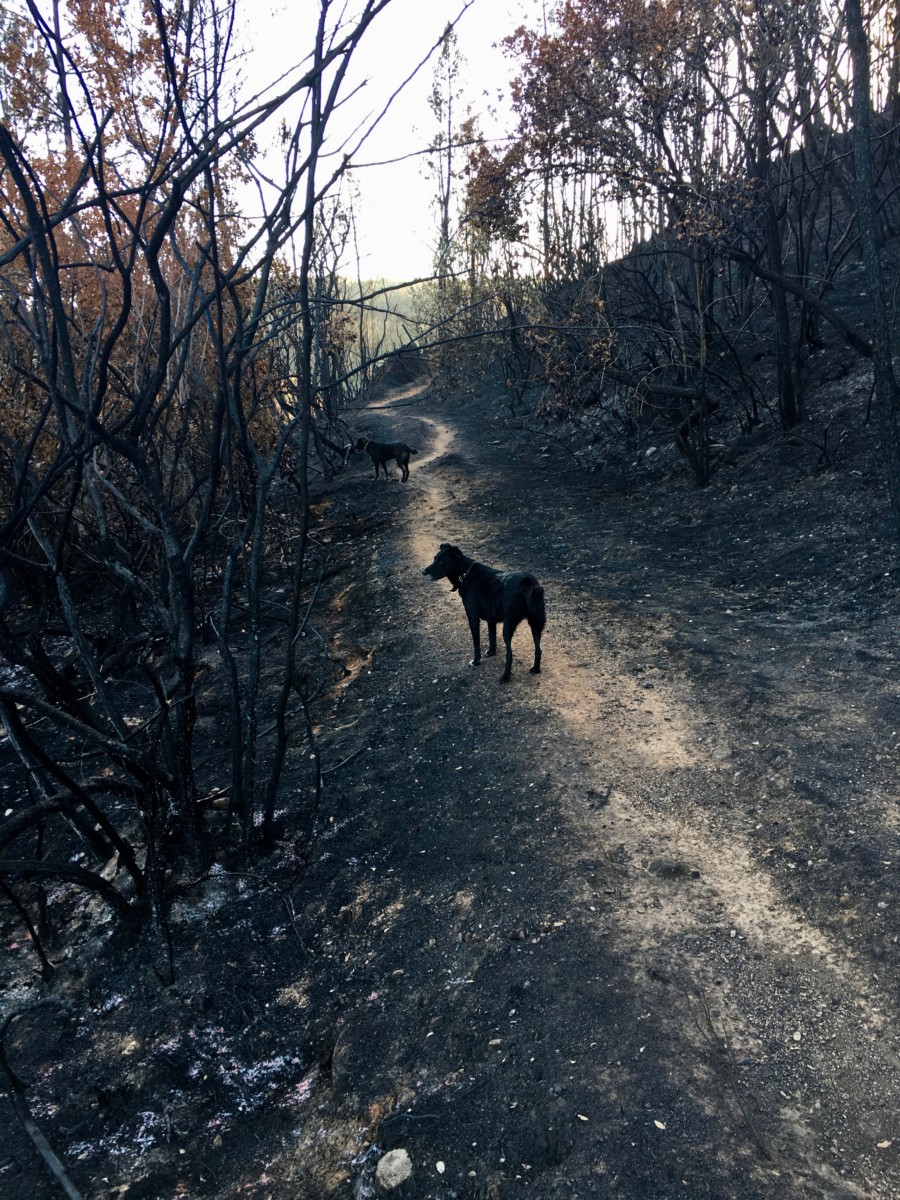 De weken na de brand werd de impact eigenlijk pas goed duidelijk. Alles in de wijde omtrek is zwart en kaal. We maakten een aantal autotochtjes om de – altijd zo mooi groene – omgeving te bekijken. Welke kant je ook op rijdt: zwart, zwart, zwart.