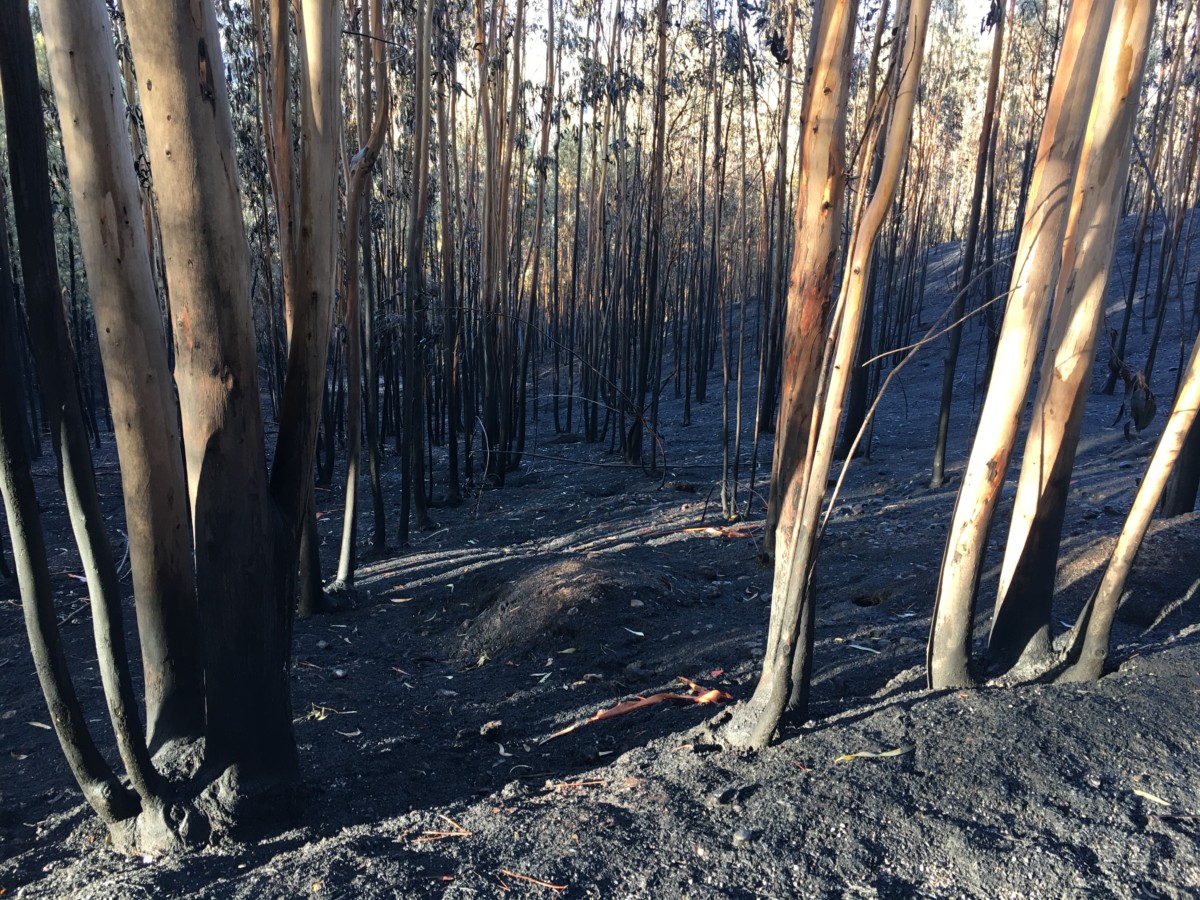 Mijn dagelijkse wandelingetjes met of zonder hond (wie laat wie uit…) rondom ons dorp geven hetzelfde treurige beeld. Mijn dochter uit Lissabon, die een keer meewandelde, merkte op: “Ik ruik helemaal geen natuur meer.” Dat klopt, je ruikt nu voornamelijk een schroeilucht en alle geurige dennennaalden en eucalyptusbladeren zijn verbrand.