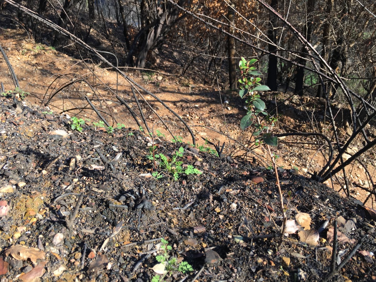 Ja, langzaam aan zie je het landschap veranderen. Zijn er nieuwe uitzichten, zie ik huisjes en wegen waar ik het bestaan niet van wist. Kan ik de vrachtwagens met omgezaagde boomstammen niet meer tellen, en zijn er nog steeds schrijnende gevallen van mensen die alles kwijt geraakt zijn en nog geen perspectief hebben. Iedereen krabbelt op, de natuur ook en zie je bijzondere dingen en andere kleuren. De contrasten zijn veel groter. Mijn moeder die hier was met kerst en oud en nieuw, kon het allemaal niet bevatten. En dat is het eigenlijk ook niet. Een ieder heeft zo zijn/haar verhaal en is er een leven voor en na de brand. Sterkte allemaal! En we maken er weer wat moois van, met nieuwe planten, bomen, bloemen!