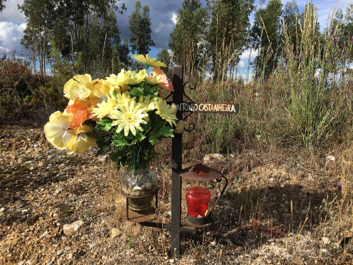 In de berm van de weg tussen Maladão en Arganil kwam António Castanheira om het leven. Er staat nu een monumentje vrijwel onopgemerkt. Zijn dochter heeft het er neergezet en al jarenlang liefdevol verzorgd. Altijd staan er frisse bloemen en een waxinelichtje. Het zijn kunstbloemen, maar ook die verleppen (verbleken).
