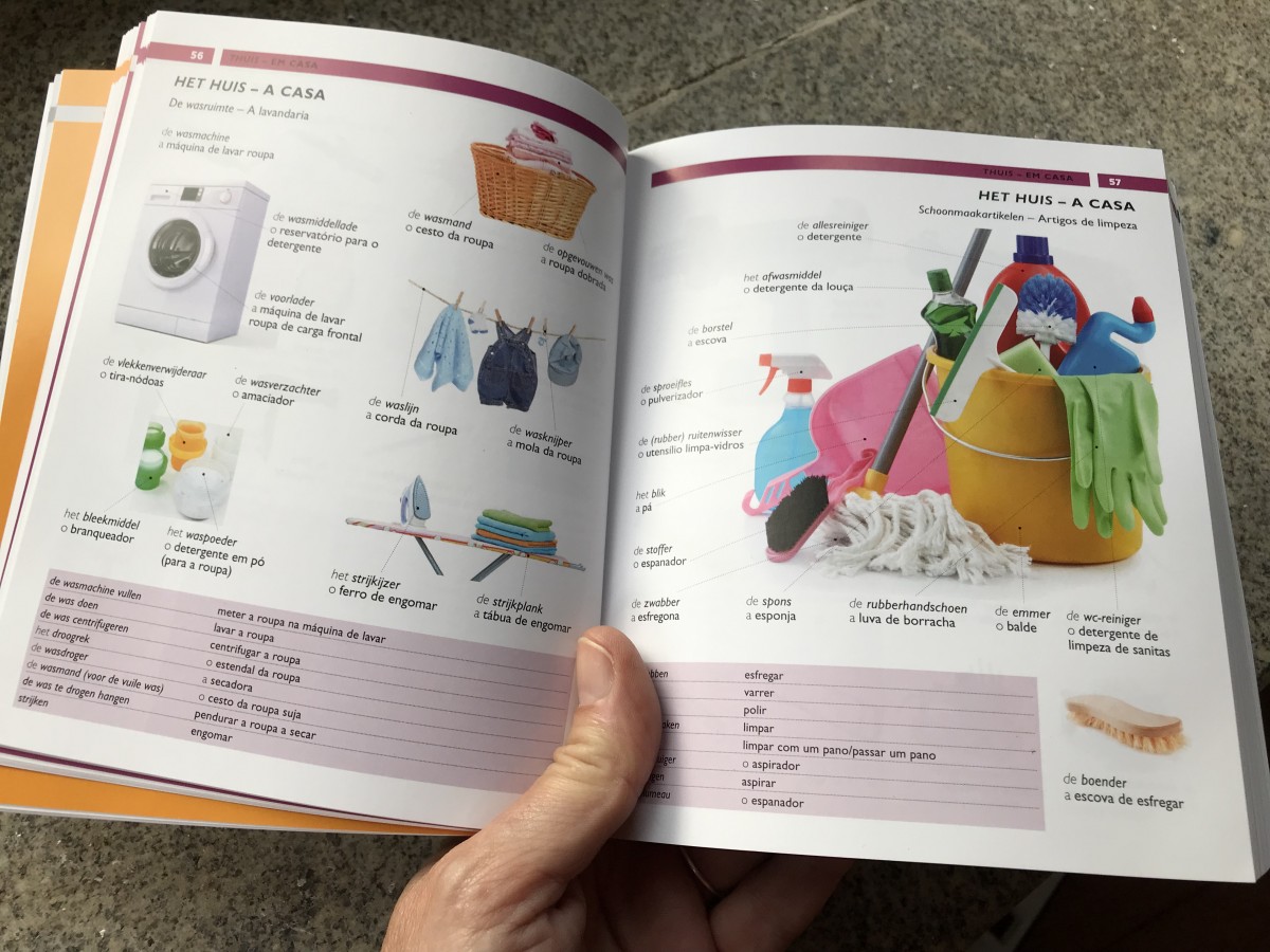 Je kunt ook snel woorden opzoeken met de Nederlandse of Portugese woordenlijst achterin. Al staat niet alles erin, dat is onmogelijk, want het is maar een klein boekje (400 pagina’s).