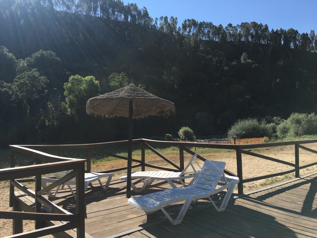 We verblijven op de Xisto Camping van Janeiro de Baixo (12 km van Pampilhosa da Serra), een kleine en heerlijk rustige natuurcamping pal aan een rivierstrandje. Bijna iedereen komt met een klein tentje, 2 dames delen een bungalow en wij hebben ons caravannetje meegenomen, waarmee we met stip de meest luxe kampeerders van de hele camping zijn.