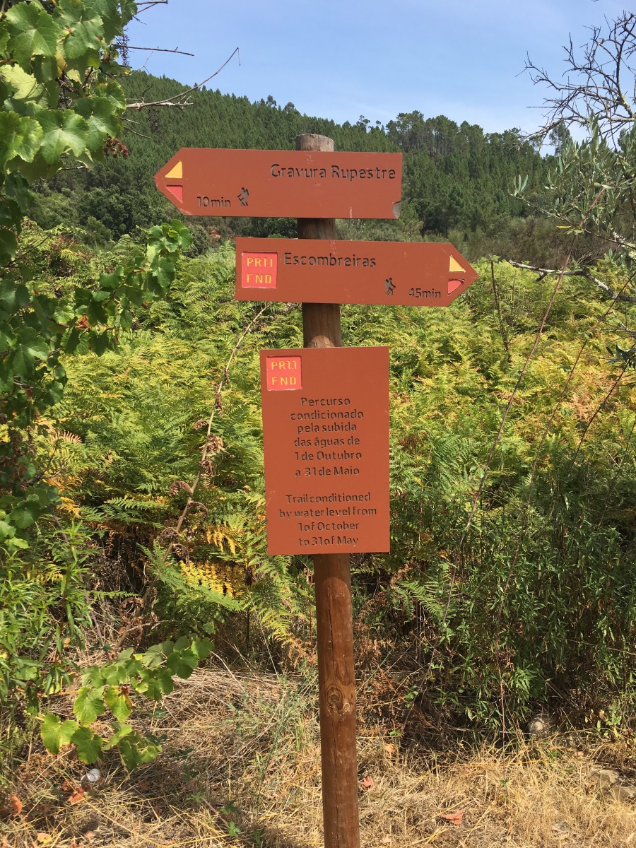 De mooiste wandeling vond ik die bij Barroca (PR1 FND), langs de oevers van de Zêzere rivier, met de Gravuras Rupestres (rotsgravures). Heel indrukwekkend, deze rotsgravures van tussen de 17 en 22 duizend jaar geleden op grote stenen die in de rivier liggen. Geen borden met uitleg, geen hekken, je kunt ze aanraken en eroverheen lopen. Heel duidelijk zijn nog twee paarden te zien. In het dorpje Barroca is een mooie expositie met achtergondinformatie over deze rotsgravures, het Centro de Interpretação da Arte Pré-Histórica do Poço do Caldeirão.